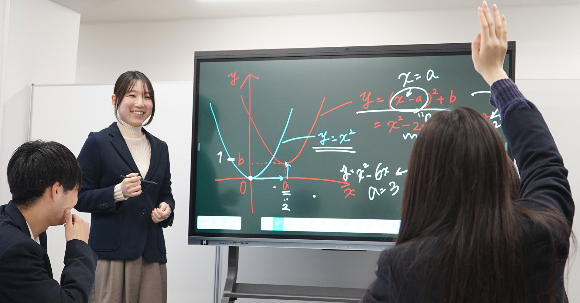 従来の黒板やホワイトボードと組み合わせて、授業の効率化と理解度の向上を後押し。