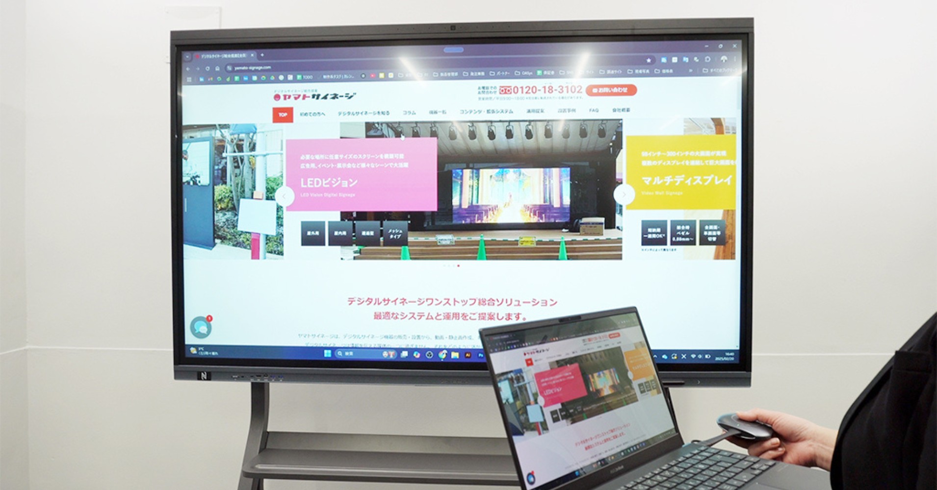 天吊タイプなど、固定設置されているプロジェクターは移動することが困難です。スタンド設置した電子黒板なら、移動させることができます。参加人数や室内のレイアウトに合わせて、画面位置を好きな場所に移動することが可能です。